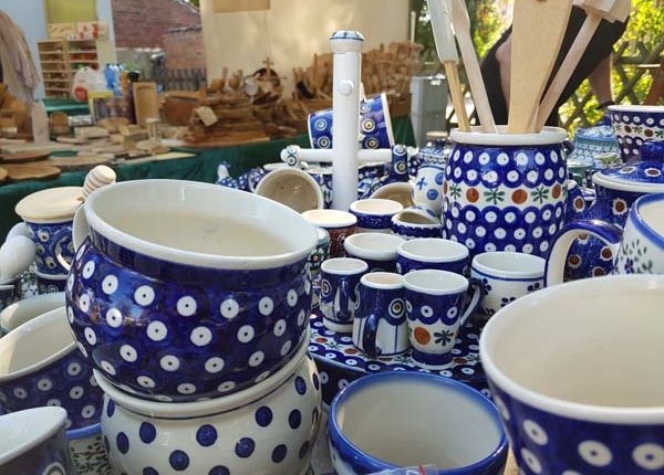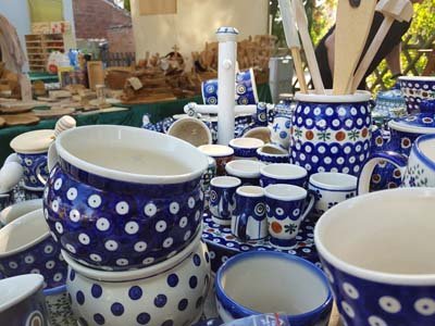 Auf dem Kunsthandwerkermarkt gibt es neben Keramikerzeugnissen Korb- und Holzwaren, Spreewälder Kerzen, Hornschmuck, Plauener Spitze und vieles mehr zu kaufen. Für Stimmung und das richtige Flair sorgen Straßenmusikanten.
